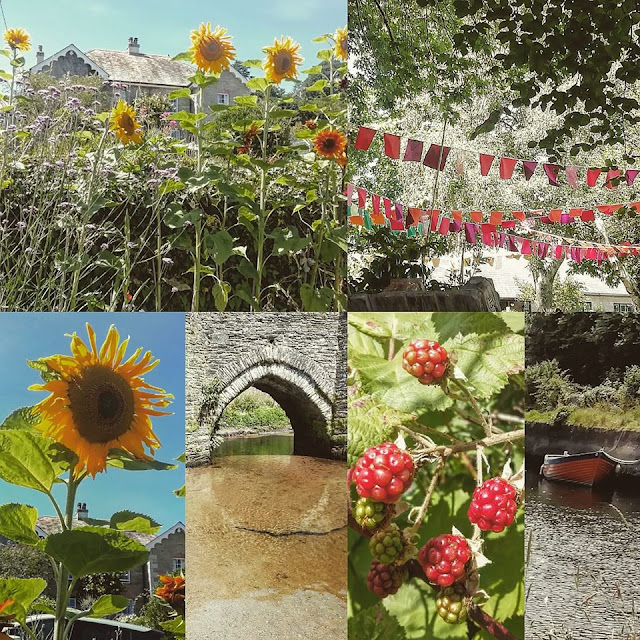 Beautiful River fowey walk and flags flying in Lostwithiel. Sunflowers always cheer me...Their big beautiful heads looking towards the Summer Sun.