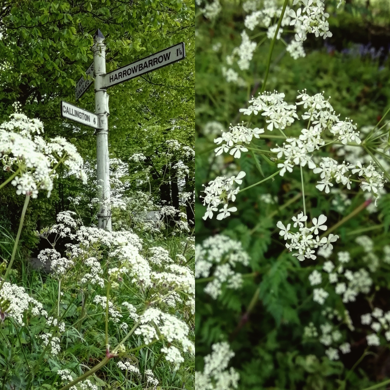 I think every day its rained so far... In between showers & complete downpours we've been to some lovely places like Totnes Market town in Devon & The Duchy Nurseries in Cornwall... A beautiful walk with my mum near Harrowbarrow in Cornwall and the country lanes nr my twinnys home... Lots of lush green lanes of cow parsley after all that rain.